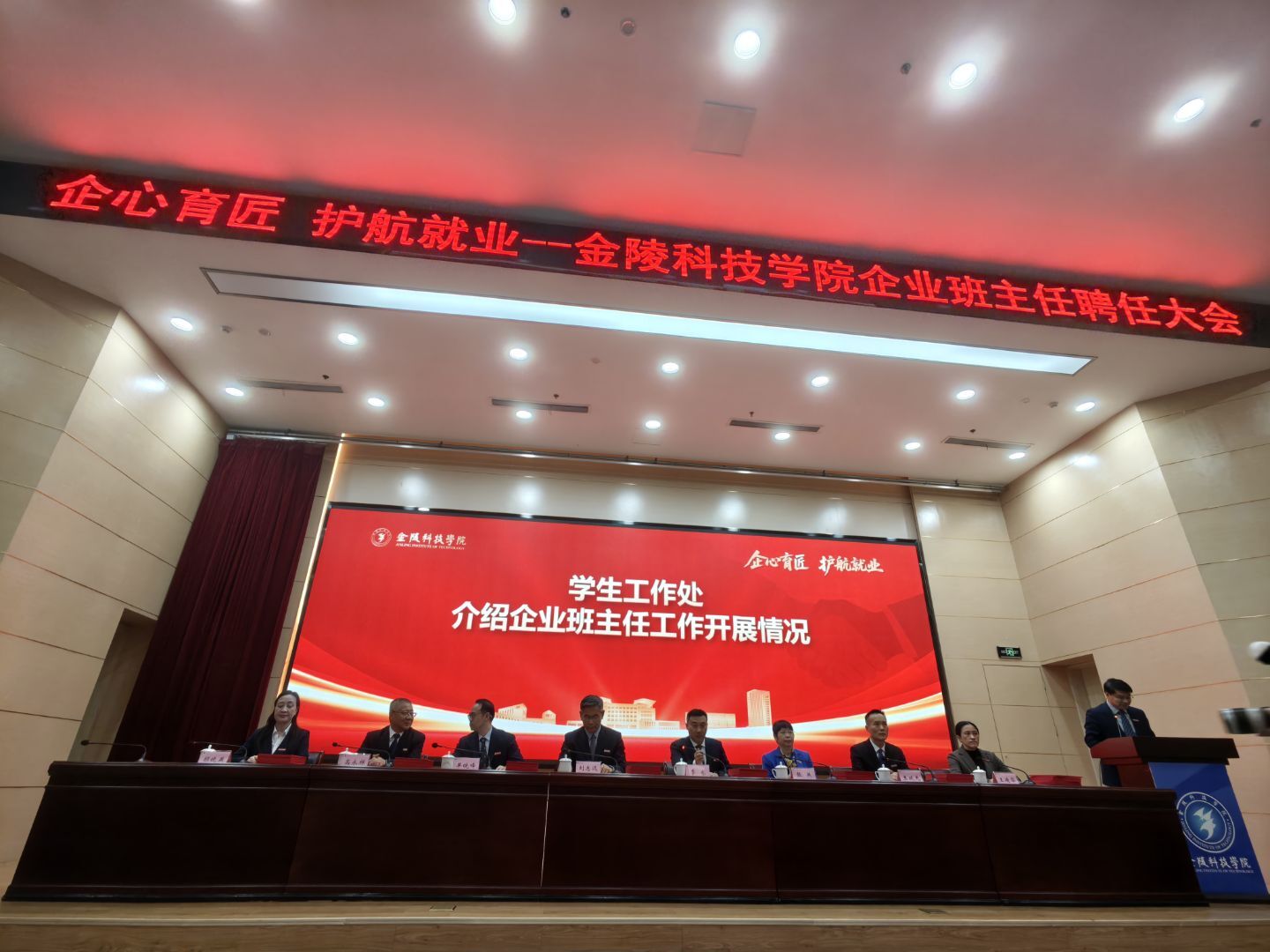2025年11月26日,金陵科技学院企业班主任聘任大会在金陵科技学院科技楼报告厅举行。江苏凯发K8科技(集团)股份有限公司唐佩、徐敏博、罗涛、孙文雅同志受聘金陵科技学院软件学院企业班主任,并随后在学院组织下,参观金陵科技学院科创空间,参加学院研讨会。